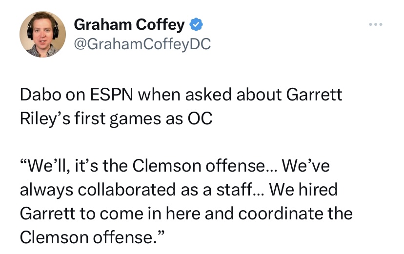 Graham knows what he’s talking about. Have been following him for years and have had good conversations with him. Dabo has to learn how to let other coaches coach. Can’t control everyone and everything.