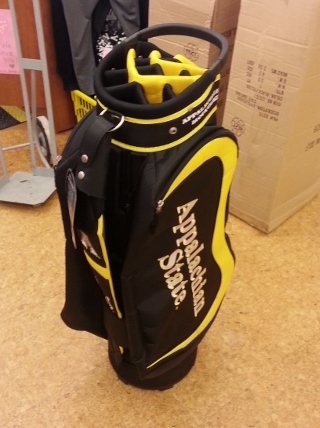 "We offer the current bag for purchase by boosters. I am attaching a picture. It will be the one we use through 2013-14. It is a Nike bag and will come to you personalized with or without the SoCon logo on the ball pocket. Cost is $200.00 which includes shipping and personalization. If you want one let me know shipping address and send check made out to ASU Athletics. On memo line you can put golf bag. Mail to address below. We sell about eight of these bags a year."