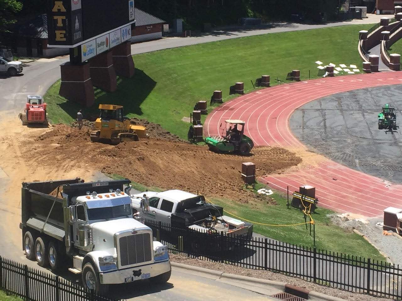 Looks like they are covering the track behind the Bobby Lamb end zone. That make sense since they are regrading the hill. I wonder if they plan to bury the rest of it or remove it? Seems like burying it may be less costly.