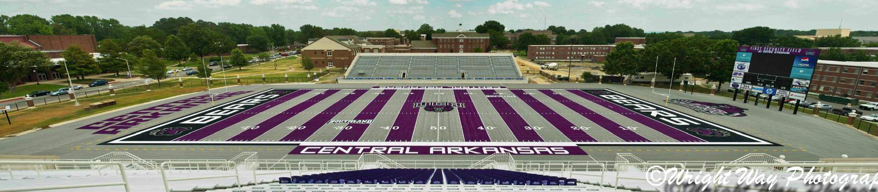 Black out end zones and much much more next time turf needs replacing. Central Ark has turf and logos way way out side of the field of play: