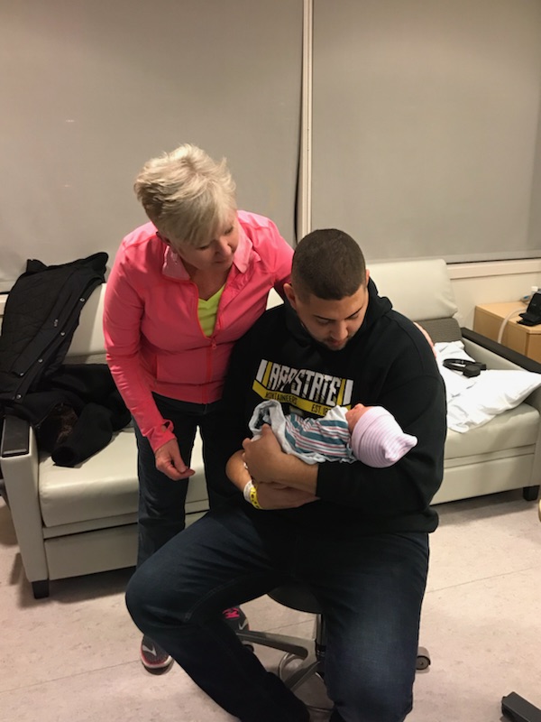 Today my wife gave birth to our beautiful daughter today. Wore the App State hoody to help her make a college choice later in life. Still no name, but App Nation gained another fan today.