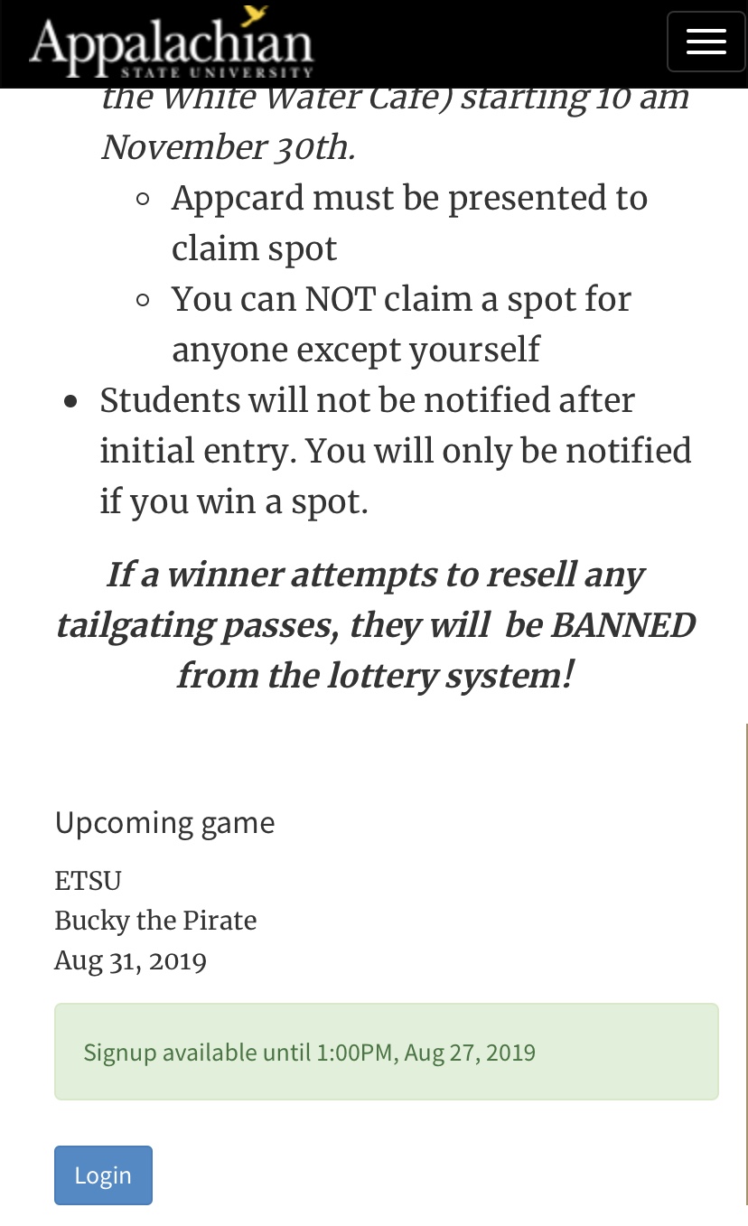 At Ole Miss, and other Old money institutions, these tailgates are set up and catered by private contractors hired by alum and generous parents. The students just stumble in looking for free food and booze, probably not in that order. I don't see App getting to that place because of our blue collar mentality. I like our blue collar status and i think our students will continue to figure out how to throw a party without their mommy and daddy's help. And become better leaders in the process.