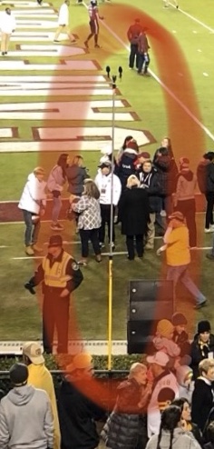 We need to invest in one or two of those microphones for our co-produced games and get a few Comm majors to stand with them near the student section during games.