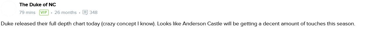 Someone on 247 posted this taking a dig at not having a depth chart posted and said it is a crazy concept. There are schools that never post a depth chart. We are not the only D1 school who is not posting one. This is just the first time I can remember in a long time that we did not do it.