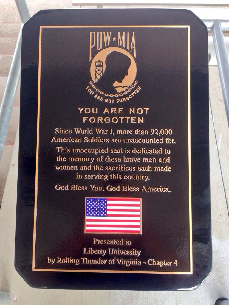 Liberty University Installs Unoccupied POW/MIA Stadium Seat