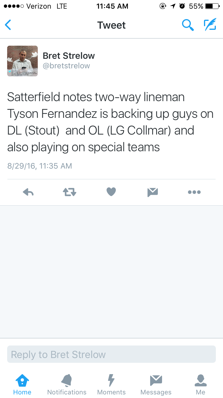 Just trying to keep it straight. Is there a possibility that Tyson plays both ways in the same game? Obviously no way he does that for tons of snaps but is it a possibility?