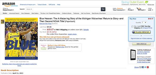 "We're very sorry for this mistake. The Free Press had prepared a fantastic book to publish should Michigan win the national title, and an error with our book publisher caused the promotion for the book to be displayed on Amazon. Our publisher is working with Amazon to make sure it gets removed. Hopefully at this time next year, however, we WILL be publishing either a book on Michigan or Michigan State winning the 2014 national title!"