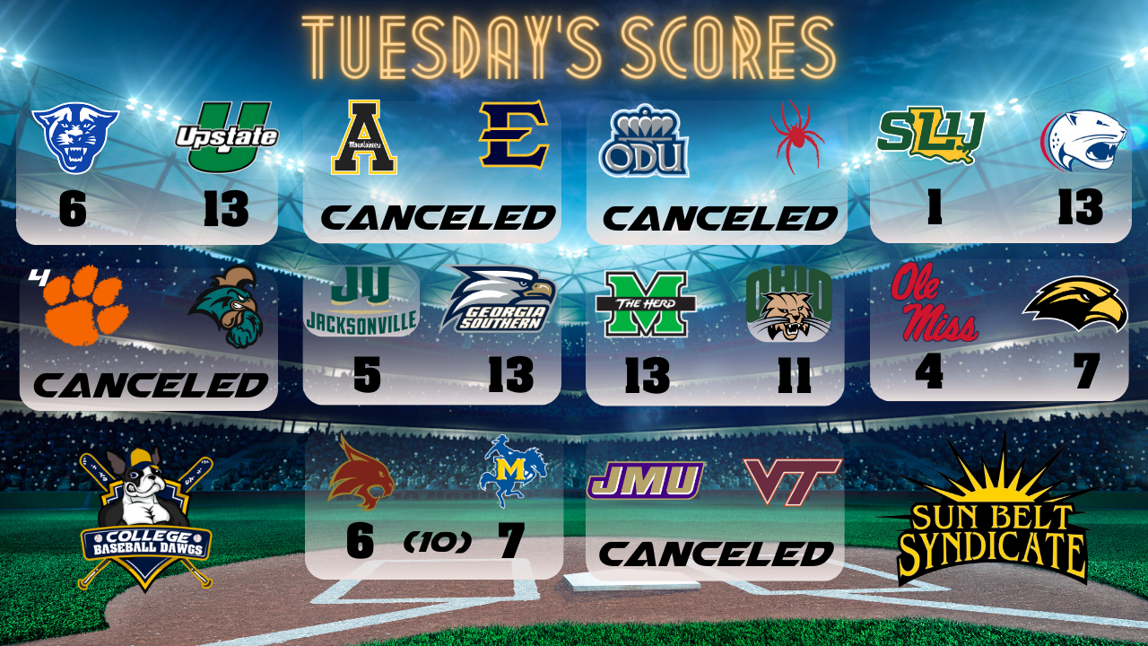 Play suspended in the 3rd in Conway. 5 HR's combined already in that one. Too bad it couldn't continue! Speaking of HR's, UL got to put on a HR derby down in Statesboro! lol