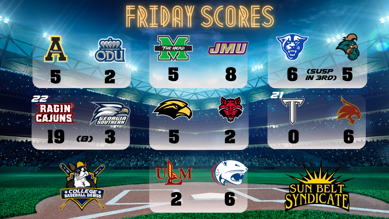 Play suspended in the 3rd in Conway. 5 HR's combined already in that one. Too bad it couldn't continue! Speaking of HR's, UL got to put on a HR derby down in Statesboro! lol