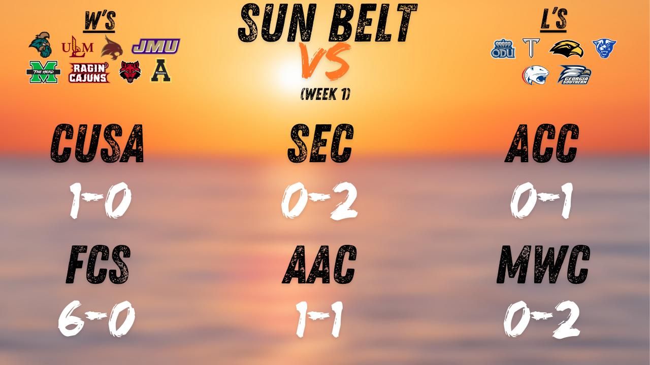 You really see the difference in conferences when looking at week one standings. The power conferences have very few losses while each G5 had 4 or more teams lose. It’s looking more and more like we are maybe Triple A versus the majors. A Triple A could get some good pitching and maybe some timely hits and knock off the White Sox but highly unlikely that any would beat the Dodgers. For the longest time the same 10 or so big boys have ruled with another 10-20 who jostle back and forth for that 11-30 range. Then you get the couple of G5’s who put it all together and slide into that 15-20 range. I think by year’s end those magical G5 teams will be fewer and fewer. While we will have solid college football teams we will knock each other off and the odds of one going 11-1 will be rare.