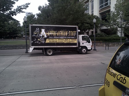 That is a truck from Mutual Distributors (beer dist. company) here in Charlotte. There are a few restaurants in that area that they supply. I saw it today as well since it was parked across from where I work (Convention Center) which is where this picture was taken.
