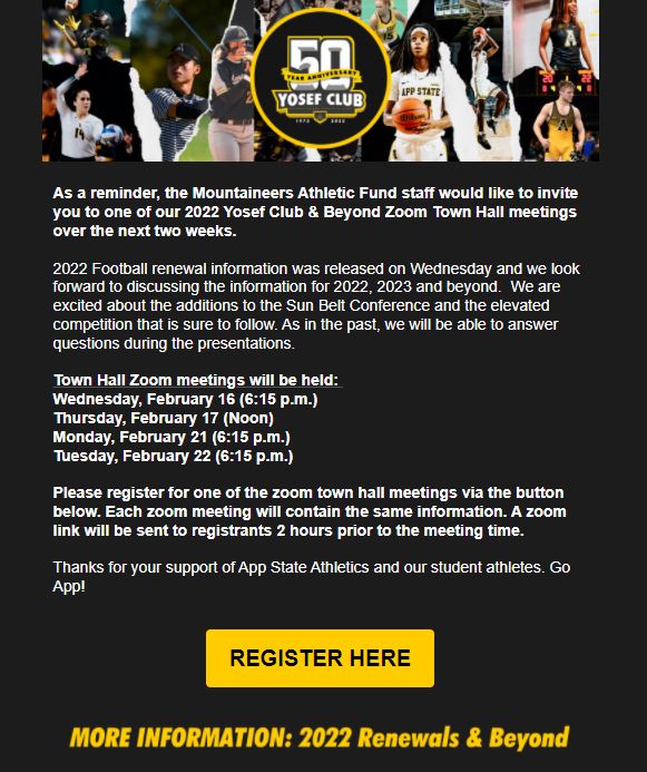 We do have a waiting list of about 200, but if you bothered to read the thread, just above you it was stated that these are people that have applied for season tickets this year and are waiting for the renewal process to be completed for seat allocation. While there is a good chance that these folks are likely only in it for this season, you don’t know that. I get that you are taking a stand for the little guy, and it’s admirable, but stop seeing what you want to see and see what is actually there. Mid week games are an unfortunate reality for App because of our brand. It also didn’t help our cause with getting off of them by packing the stadium for back to back week nights, which also blows your theory that they are bad for families. We aren’t going to go to mini plans because it created another situation for you to complain about buying a three pack and there is a weeknight game in it. It’s ok to be frustrated and I get it. But please stop using your emotions to bash the school and AD for going after a “money grab.” It’s poor form and not correct. These are necessary moves to remain competitive.