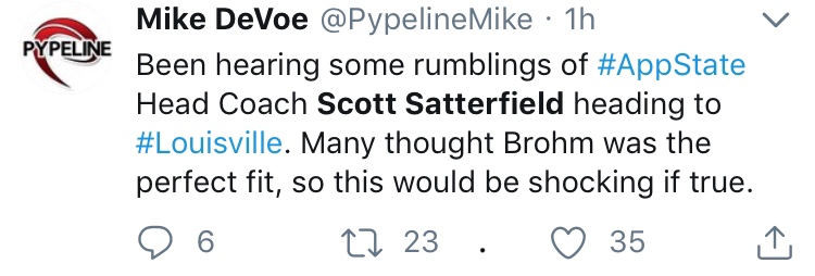 Again we should hold our breath if no announcement is made before our Championship game. Louisville is a tougher rebuild than UNC and it would take time to build a recruiting base. But Scott may say it’s now or never. It has decent P5 job potential. But 6 years out