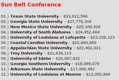 The one that really pops out to me is GA ST I went to one game down there and you could throw hand grenades in there and not hurt anyone.hapapp wrote:Sun Belt Revenues.JPG
