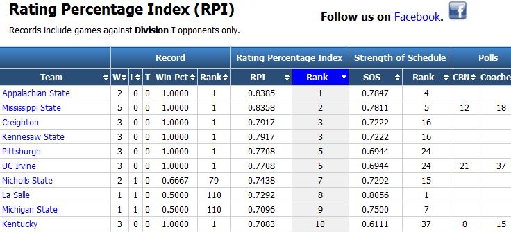 That's freakin' awesome. I know the mathematics of computer rankings early on aren't accurate, but still, it's freakin' awesome.